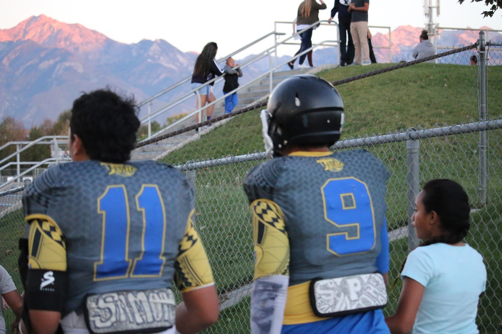 Disclaimer: If you are not aware, this blog is the personal blog (Erin Apelu) I set up 3 years ago to post pictures I took of my boys and their friends playing football. As the years passed I began including all the varsity (as many as possible with my non-professional camera) and continued to post them on this blog. While I am aware that many of you might not see your picture on this blog (if you were playing that night), rest assured we (Aryana and myself) do try and get as much of the team as we are able to. The pictures near the end of each post are usually of my family, my kids and some of their friends. I include them on these posts because it is easier for everyone to copy whatever pictures they want without me having to send them all individually. Thanks--Erin Apelu!